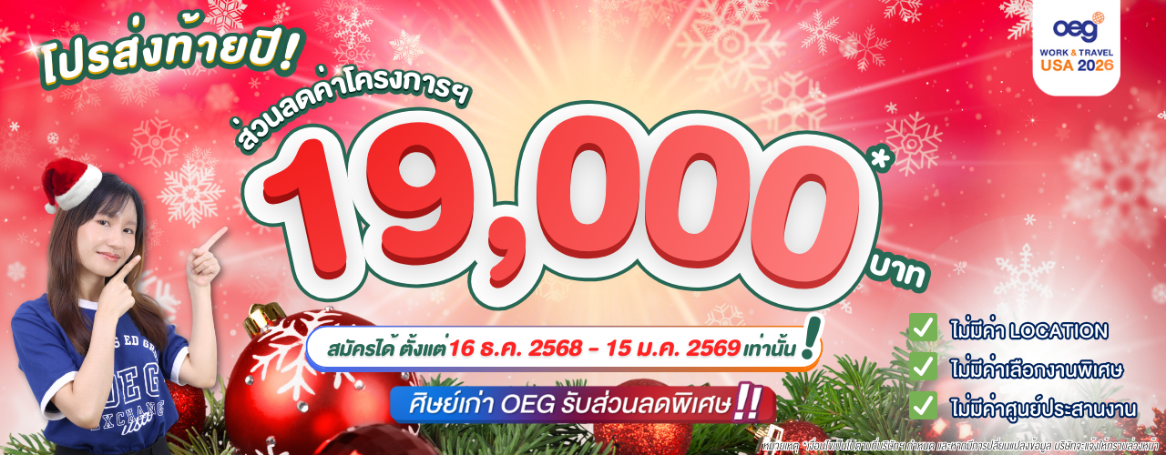 โปรโมชันสำหรับนักศึกษาศิษย์เก่า OEG ทุกโครงการ ทั้ง Work and Travel USA และ High School Exchange ที่เข้าร่วมโครงการจนสิ้นสุดโครงการฯ โดยสมบูรณ์ โดยจะต้องลงทะเบียนยืนยันสถานะ 👉คลิกที่นี่